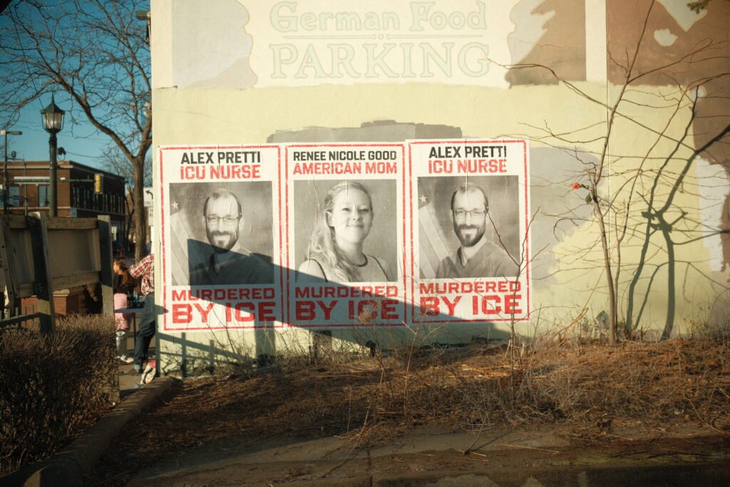 The sentiment unfolded on the walls and street corners too. Graffiti that says “FUCK ICE” adorn the most mundane of urban relics, from unassuming blank walls to stop signs. You can scarcely walk a block without seeing an anti-ICE poster, or the image of Renee Good or Alex Pretti staring back at you. I once counted signage in 80% of the homes on a three-block radius.