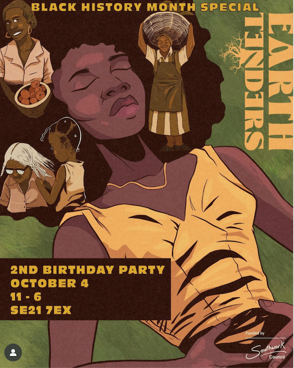 Earth Tenders, a community garden and hub based in South East London, is turning two on October 4th! And to celebrate they're hosting an incredible group of Black facilitators to run programmes from talks on reparations through community gardening to radical bunting making.