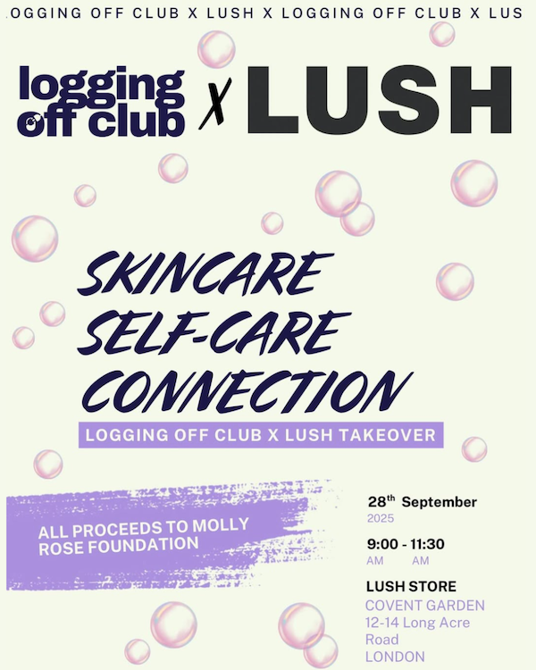 shado contributor and author Adele Zeynep Walton is hosting a special version of her in person get-togethers, the 'Logging Off Club' at Lush this Sunday! Expect stations to try out Lush products, guided prompts for an offline morning, and the chance to meet new people!