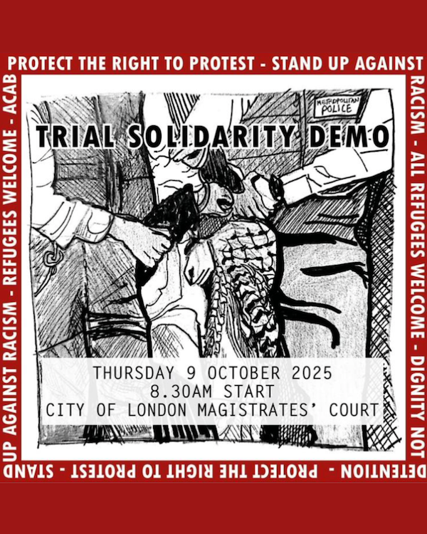 On 2 May 2024, 44 peaceful processors were arrested in Peckham for halting the forced transfer of asylum seekers to the Bibby Stockholm barge. A year later, they are still facing trial. Show up for them at the Magistrate's Court Thursday, October 9th at 8.30am.