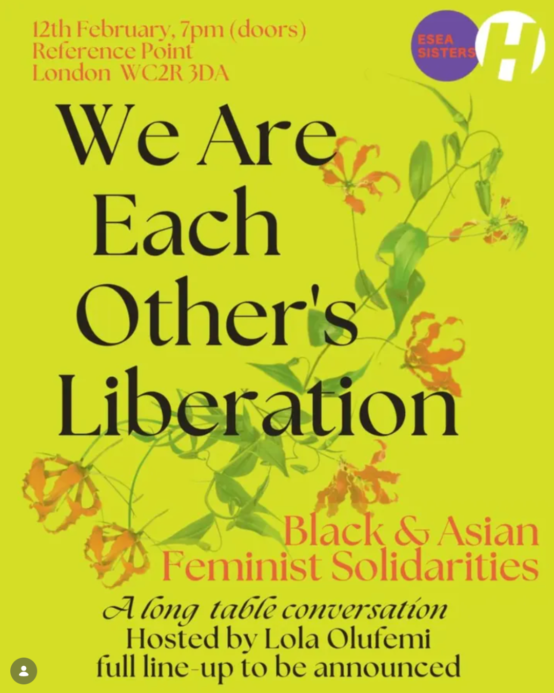 On 12th February ESEA Sisters will bring together artists, writers, and organisers for discussion and performance inspired by We Are Each Other’s Liberation, exploring past, present, and future Black and Asian feminist solidarities, chaired by Michelle Low.