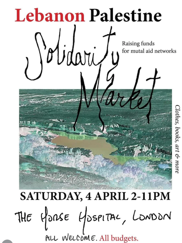 Steadfast Solidarity Market is a day-long fundraiser on 4th April at The Horse Hospital, bringing together shopping, music, and Lebanese food to support grassroots aid efforts in Gaza and South Lebanon while creating space for collective grief, solidarity, and resistance.